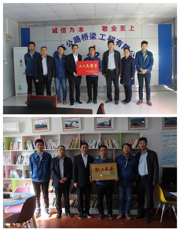 10月27日上午, 集團(tuán)公司工會(huì)副主席吳曉伍一行來到定長路面02標(biāo),對項(xiàng)目 “工人先鋒號”、“職工書屋”創(chuàng)建工作進(jìn)行考核驗(yàn)收。公司工會(huì)主席楊建強(qiáng),總經(jīng)理助理、路面公司總經(jīng)理江仲明等陪同。