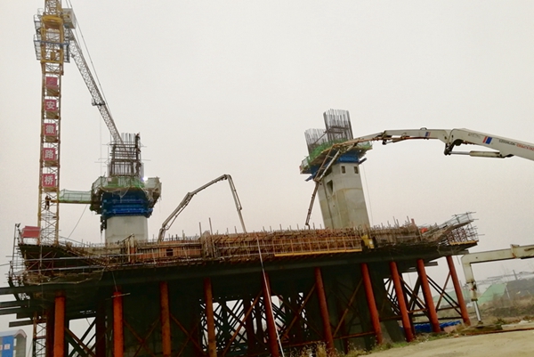 裕溪河特大橋主橋0#塊開始澆筑