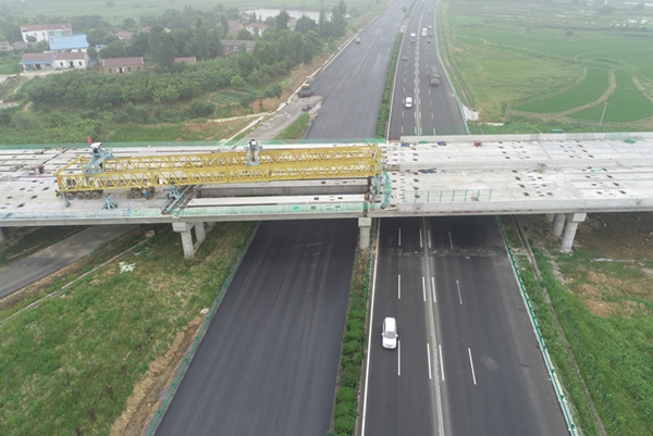 上跨G3京臺高速分離立交橋為涉高速施工,所跨路段日均車流量達五萬多輛,并與正在進行的高速改擴建瀝青攤鋪交叉施工,需要在規(guī)定的半幅封閉時間內(nèi)完成上跨梁板架設(shè)任務(wù),施工環(huán)境復(fù)雜,組織難度較大。經(jīng)過多次專家論證,項目不斷優(yōu)化施工方案,并堅持責(zé)任到人,狠抓時間節(jié)點,有效克服了各項困難,梁板架設(shè)有序推進,順利實現(xiàn)了上跨高速橋的順利合龍。