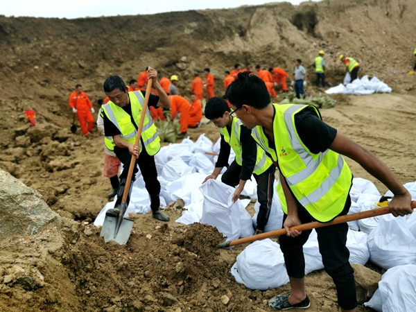 由安徽路橋市政分公司軌道交通4號線、引江濟淮新橋大道、徽州大道等項目組成的三支抗洪搶險隊,260多名職工在150多臺機械設(shè)備的配合下,在環(huán)湖大道杭埠河區(qū)域執(zhí)行筑壩固堤任務(wù),已連續(xù)作戰(zhàn)超30小時。目前,大壩被提升4.5米,填筑水穩(wěn)3440方,級配碎石8126.4方,風(fēng)化石5024方,搬運沙袋12000余袋。