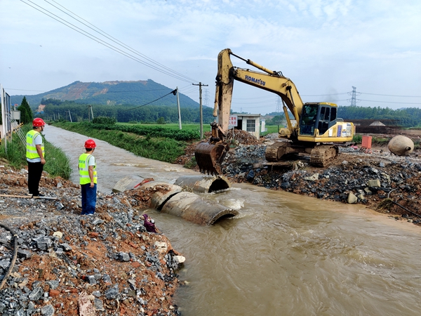 踐行國企擔(dān)當(dāng),履職盡責(zé)到位。在應(yīng)對洪災(zāi)的同時,分公司積極配合地方政府形成合力,認真貫徹“人民至上、生命至上”指示精神。7月20上午,淮河王家壩閘接國家防總命令開閘放水,公司承建的S305改建工程處于濛洼蓄洪區(qū),項目接到通知后,緊急啟動應(yīng)急預(yù)案,安排人員連夜及時撤離,對大型機械設(shè)備做好臨時加固,并加強現(xiàn)場巡視,以實際行動踐行“王家壩精神”,確?;春影矠?。在宣城涇縣,受持續(xù)強降雨影響,徽水河水位快速上漲超警,蕪黃項目橋梁下構(gòu)工程面臨險情考驗,形勢嚴(yán)峻。連日來,項目全力“風(fēng)雨無阻搶工期”,準(zhǔn)備充足防汛物資,對重點工點硬化防護、挖掘排水溝渠,確保防汛萬無一失,堅決打贏打好“縣縣通”攻堅戰(zhàn)。