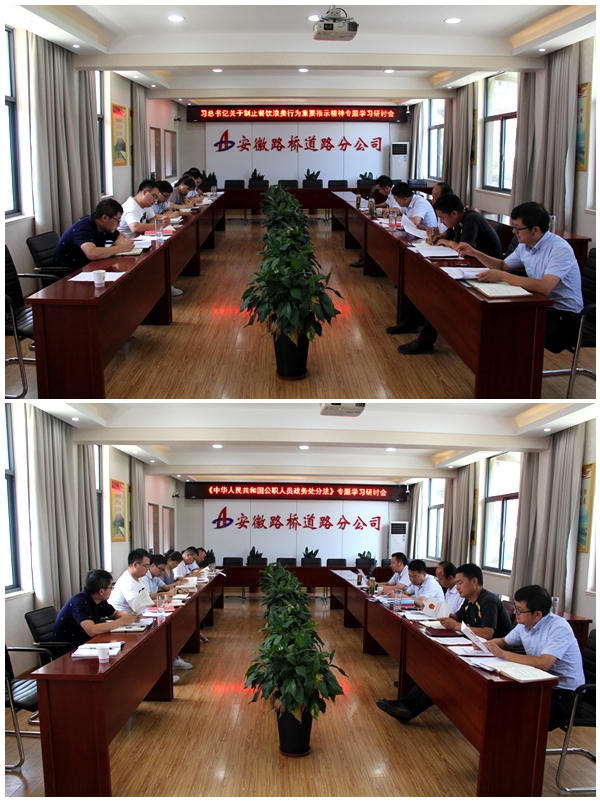 8月15日上午,道路分公司黨總支召開專題學習研討會,深入學習貫徹落實習近平總書記關(guān)于制止餐飲浪費的重要指示精神和《中華人民共和國公職人員政務處分法》,分公司領(lǐng)導班子、總支委員及后勤部門負責人參加學習并結(jié)合實際開展研討。