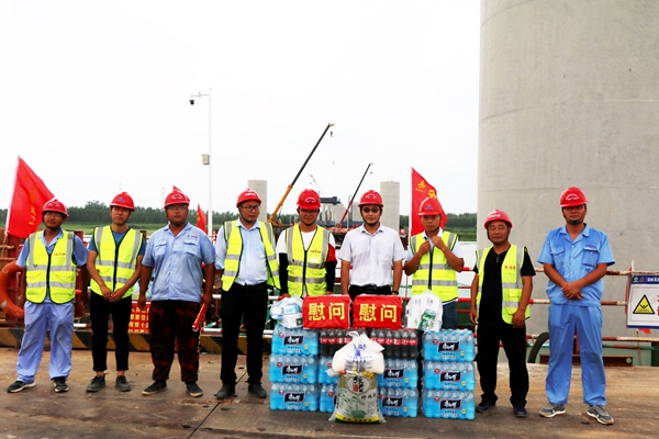 太陽炙烤著大地,體感溫度逼近40℃。面對高溫?zé)崂?,項目多措并舉,全力做好現(xiàn)場施工安全保障關(guān)。每日安排送清涼,采購西瓜、綠豆、白糖、礦泉水及防暑降溫藥品發(fā)放到一線工人手中。同時,加強(qiáng)暑期安全施工技能培訓(xùn),實施“白+黑”錯峰上崗,全力保障生產(chǎn)安全。