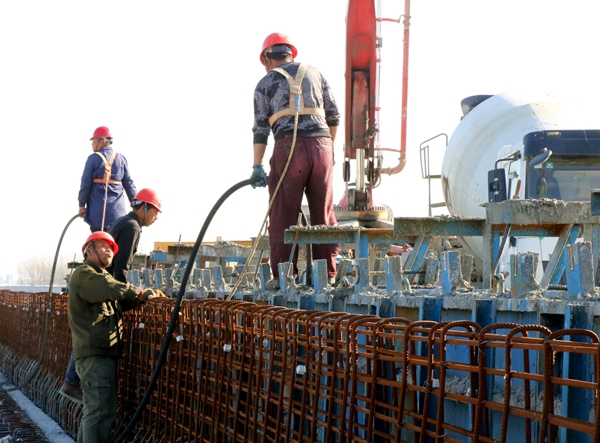 固蚌高速02標(biāo),春節(jié)期間加班加點(diǎn)推進(jìn)工程建設(shè),在南岸引橋右幅順利實(shí)現(xiàn)貫通后,170名參建人員搶抓晴好天氣,保持大干勢頭,同步推進(jìn)四個(gè)工區(qū)橋面作業(yè),架橋機(jī)、履帶吊等機(jī)械滿載開工,為3月底達(dá)成橋面工程節(jié)點(diǎn)奠定堅(jiān)實(shí)基礎(chǔ)。蕪黃項(xiàng)目再動(dòng)員、再鼓勁,人員輪休、機(jī)械不停,荊竹坑大橋、程家坦隧道及附屬工程穩(wěn)步推進(jìn),2#預(yù)制梁場每天以8片梁速度加速生產(chǎn),全力沖刺半幅通車節(jié)點(diǎn)目標(biāo)。