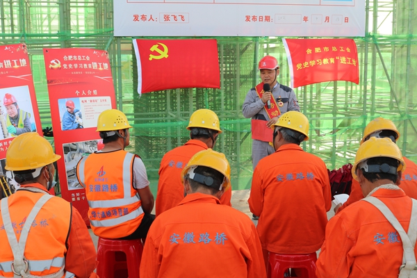 4月29日,繁華大道橋項(xiàng)目邀請全國勞動模范王開庫開展黨史學(xué)習(xí)教育進(jìn)班組活動,為一線工人宣講黨史故事。