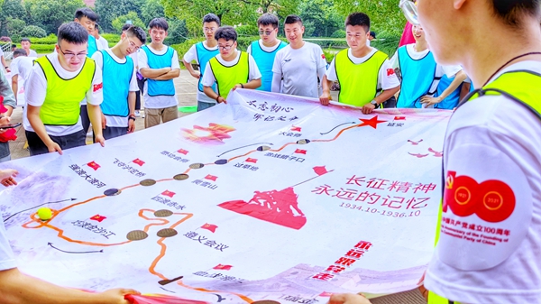 在新四軍江北指揮部紀(jì)念館,全員參觀了館藏的200余幅珍貴歷史照片、圖表和文獻(xiàn)資料,認(rèn)真了解了新四軍組建、發(fā)展和壯大的歷程,切實(shí)的感受革命先烈們?yōu)榱诵轮袊?guó)的勝利拋頭顱灑熱血的大無(wú)畏精神。隨后,大家共同完成了《歌唱祖國(guó)》合唱、“長(zhǎng)征精神”、“雷區(qū)取水”、填寫入職寄語(yǔ)和觀看愛(ài)國(guó)主義教育片《建黨偉業(yè)》等一系列團(tuán)建活動(dòng),在培養(yǎng)新員工團(tuán)隊(duì)協(xié)作能力的同時(shí),進(jìn)一步加強(qiáng)了紅色教育。
