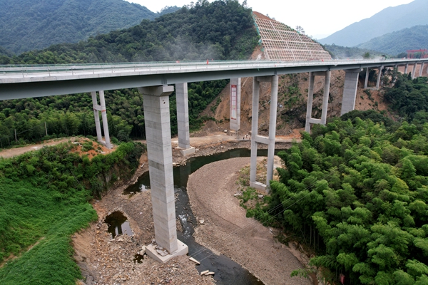 真正敢于挑戰(zhàn)的建設(shè)者,需要非凡的毅力和勇氣。位于標(biāo)頭的徽水河大橋進(jìn)場時(shí),每一臺(tái)機(jī)械設(shè)備都“寸步難行”,每一米道路修筑都要用爆破方式挖掉硬石。他們歷經(jīng)雨水、烈日的輪流考驗(yàn),立起了一排排筆直的墩柱,架起了一片片堅(jiān)實(shí)的梁板,將最艱難的1公里鍛造而成。