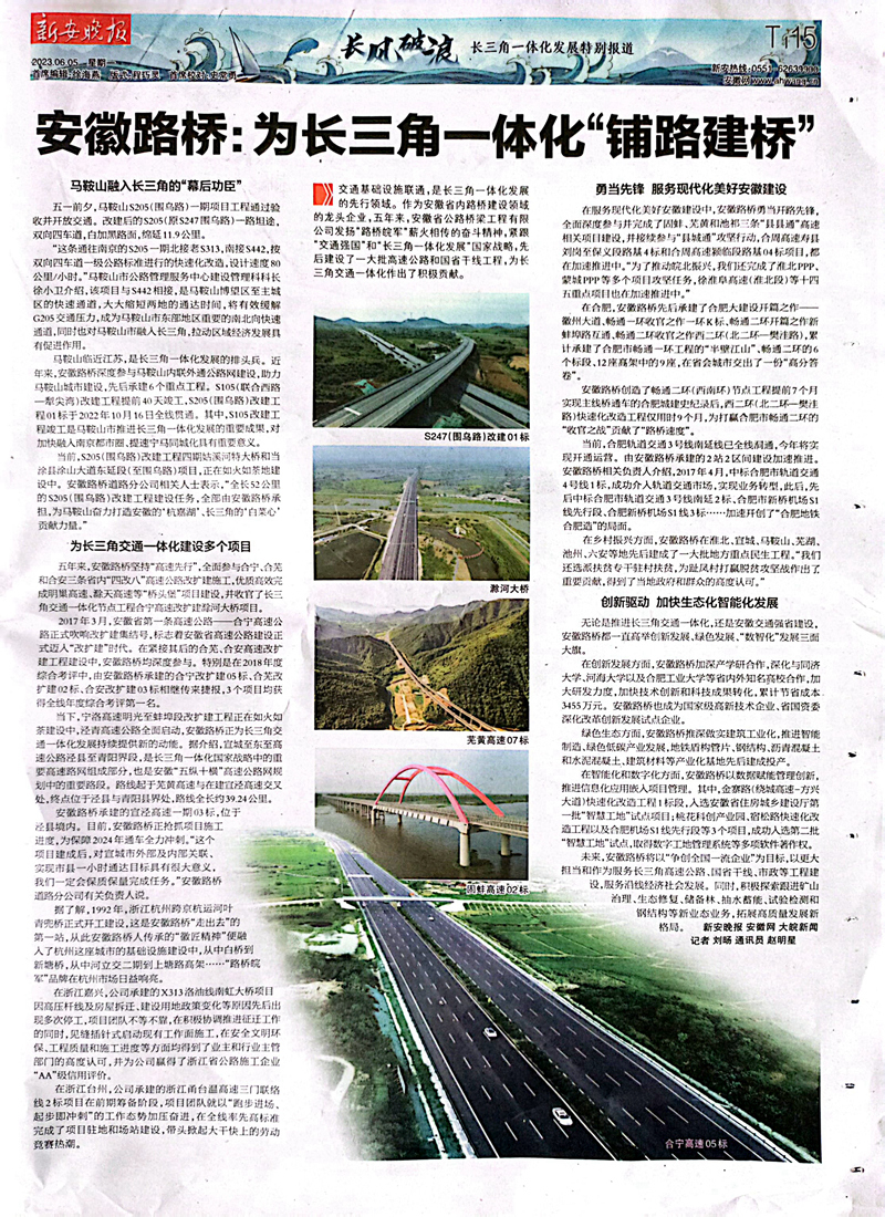 【名媒聚焦】新安晚報:安徽路橋——為長三角一體化“鋪路建橋”