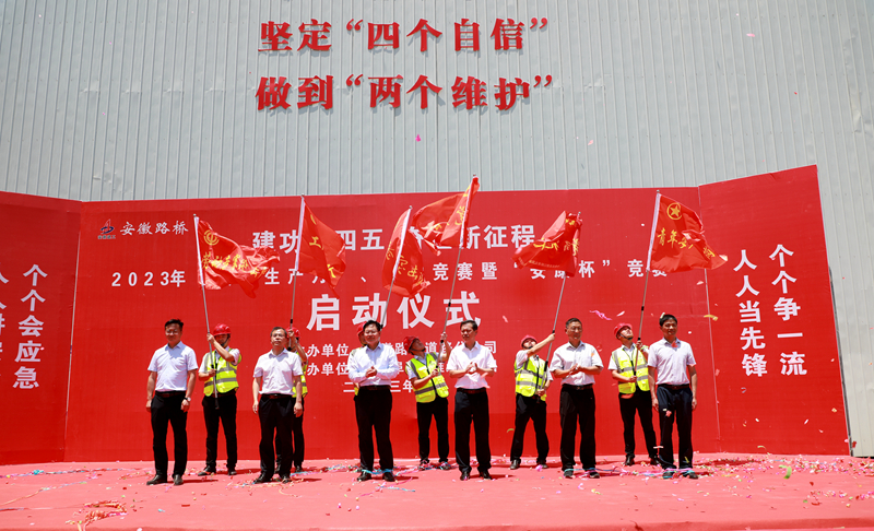 6月8日上午,道路分公司在徐淮阜高速(淮北段)項(xiàng)目舉行2023年度“安全生產(chǎn)月”、勞動(dòng)競(jìng)賽暨“安康杯”競(jìng)賽啟動(dòng)儀式。淮北市交通運(yùn)輸局黨組書記、局長王慶江宣布活動(dòng)正式啟動(dòng),淮北市交通運(yùn)輸局總工程師蔣衛(wèi),市應(yīng)急局四級(jí)調(diào)研員王琛,公司黨委委員、副總經(jīng)理韋秀剛出席啟動(dòng)儀式?;顒?dòng)由道路分公司黨總支書記、總經(jīng)理張慶書主持。