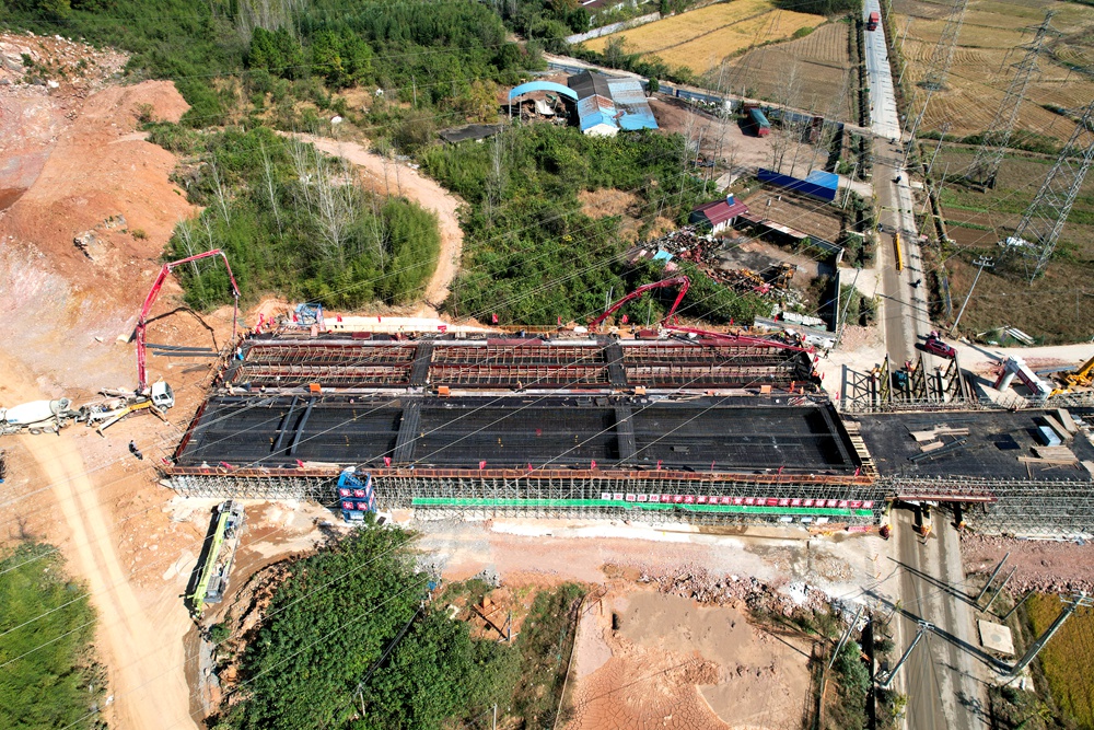 工程建設(shè)制勝在關(guān)鍵點(diǎn),項(xiàng)目部始終堅(jiān)持把關(guān)鍵節(jié)點(diǎn)工程攻堅(jiān)作為“頭號工程”。水東四號橋位于象山腳下,橫跨鄉(xiāng)道施工,施工組織難度大,安全風(fēng)險高。項(xiàng)目積極組織工作專班,通過優(yōu)化方案、細(xì)化分工、倒排工期和現(xiàn)場監(jiān)督等措施,并積極對接當(dāng)?shù)卣陀嘘P(guān)電力部門,多番實(shí)地考察、測量,保障施工過程的有序性、高效性和安全性。2023年11月8日上午,水東四號橋首件現(xiàn)澆梁順利澆筑完成,標(biāo)志著項(xiàng)目關(guān)鍵施工節(jié)點(diǎn)取得突破性進(jìn)展。