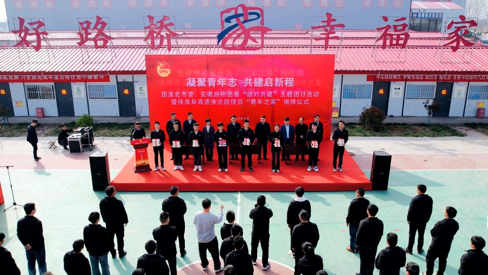 3月28日下午,團(tuán)淮北市委、安徽路橋團(tuán)委在徐淮阜高速(淮北段)項(xiàng)目聯(lián)合開展主題團(tuán)日活動(dòng)。團(tuán)淮北市委書記陳文靖、副書記李凱,公司黨委委員、紀(jì)委書記王鵬出席活動(dòng)并共同為徐淮阜高速淮北段項(xiàng)目“青年之家”揭牌。