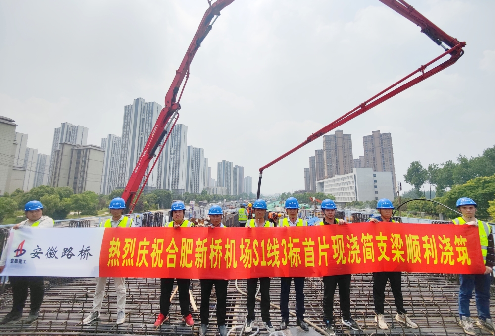 5月24日上午,合肥新橋機場S1線3標高架段首跨現(xiàn)澆簡支梁完成澆筑,項目建設(shè)進入橋梁上部結(jié)構(gòu)施工階段。