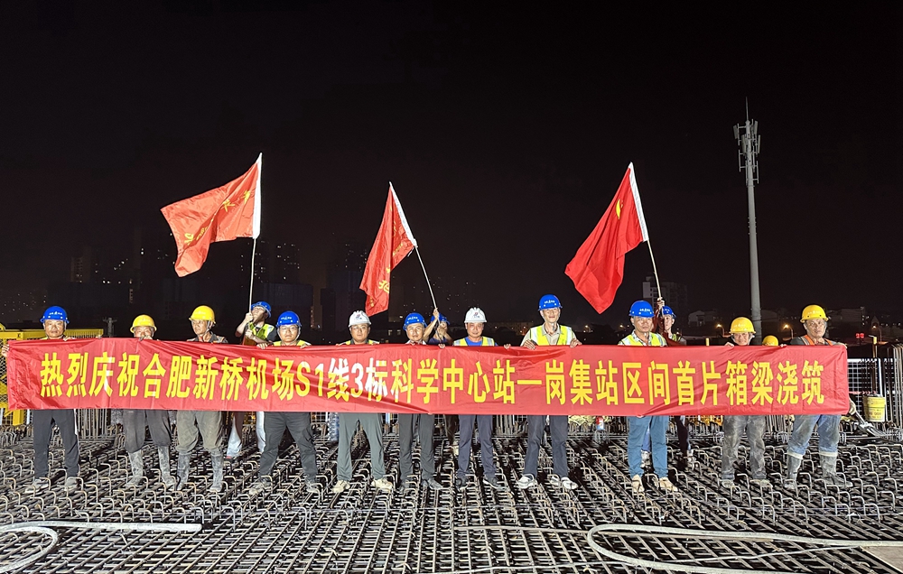 【路橋“競”行時】合肥新橋機(jī)場S1線3標(biāo)科學(xué)中心站-崗集站區(qū)間首跨箱梁完成澆筑
