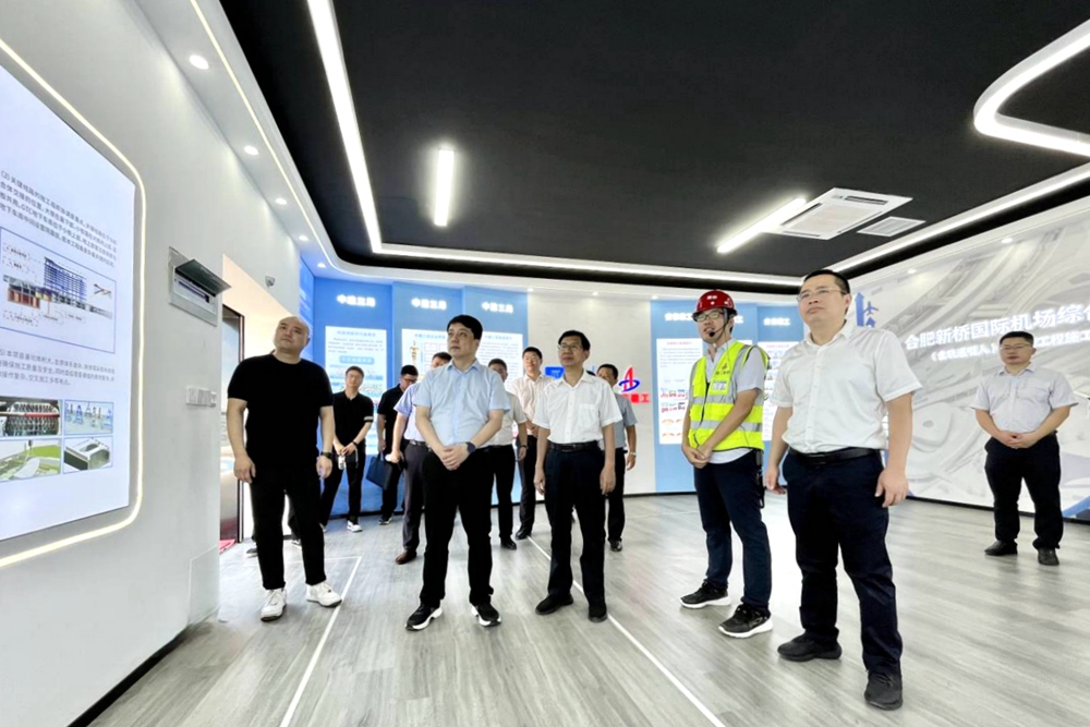 7月25日,安徽省住房和城鄉(xiāng)建設廳工程質量安全監(jiān)管處副處長黃峰帶隊赴公司承建的合肥新橋國際機場綜合交通中心項目調研智慧工地應用情況,并就中國建造(安徽)工業(yè)互聯(lián)網平臺建設征求意見建議。集團黨委委員、副總經理陳仁虎熱情接待了黃峰一行。