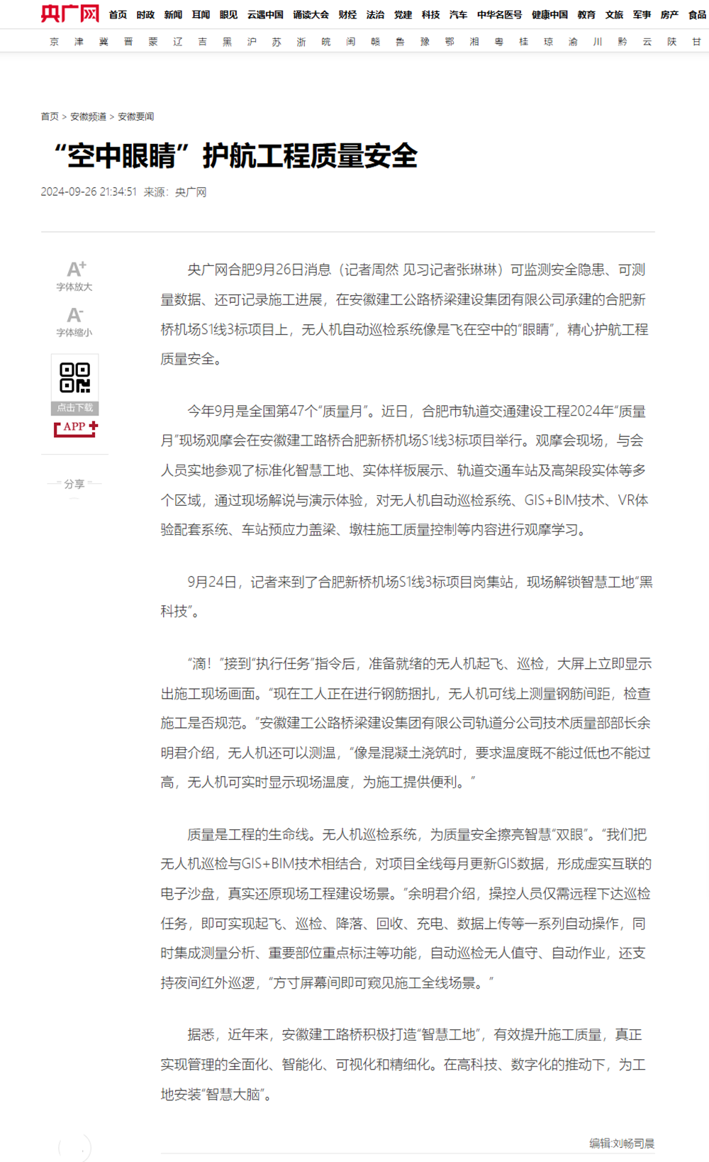 【名媒聚焦】央廣網(wǎng):“空中眼睛”護(hù)航工程質(zhì)量安全
