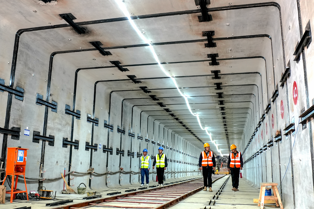 機場S1線3標(biāo)項目大力推進“清單+閉環(huán)”工作責(zé)任機制,多次召開勞動競賽大討論完善部門協(xié)調(diào)、現(xiàn)場分工。入夏以來,先后完成崗四區(qū)間明挖段盾構(gòu)井主體結(jié)構(gòu)封頂、崗集站主體結(jié)構(gòu)封頂兩大關(guān)鍵節(jié)點,向著完成全線主體結(jié)構(gòu)施工的年度目標(biāo)邁出堅實的步伐。6號線龍?zhí)镣\噲鲰椖糠e極協(xié)調(diào)各方單位,克服西氣東輸支線管道遷改這一最大制約因素,順利完成全部樁基施工,并于9月13日完成了邊跨輔房最后一段頂板的澆筑任務(wù)。新橋機場S1線先行段項目搶抓施工黃金期,聚焦關(guān)鍵節(jié)點精準(zhǔn)發(fā)力,提前實現(xiàn)史河路站硬巖地層基坑開挖見底,為項目完成年度目標(biāo)打下堅實基礎(chǔ)?;羟馪PP項目施工現(xiàn)場運輸車、攤鋪機、壓路機等機器轟鳴交錯,項目建設(shè)有條不紊、如火如荼,蓼東大道路基結(jié)構(gòu)施工已全部完成,各項附屬結(jié)構(gòu)施工也正同步進行。