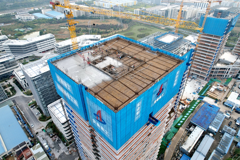 自二期建設以來,項目集中優(yōu)勢資源高效推進主體結(jié)構(gòu)施工。此次完成封頂?shù)腁4#樓單體,建筑面積約37000平方米,地上建筑22層,建筑高度95.3米。建成后將成為集高端企業(yè)總部、星級酒店、辦公樓、商業(yè)會議中心等功能為一體的現(xiàn)代化辦公聚合體。
