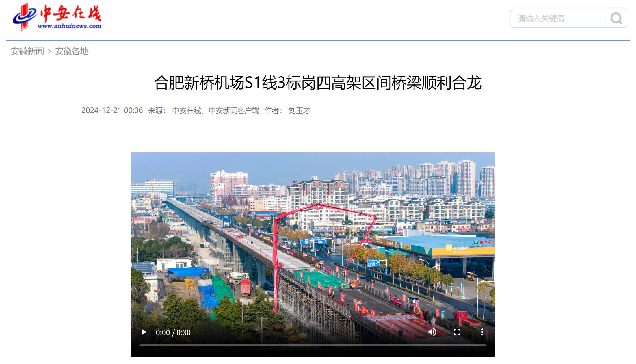 【名媒聚焦】央廣網(wǎng)、安徽日報、中安在線等主流媒體聚焦報道合肥新橋機場S1線3標崗四高架區(qū)間橋梁合龍