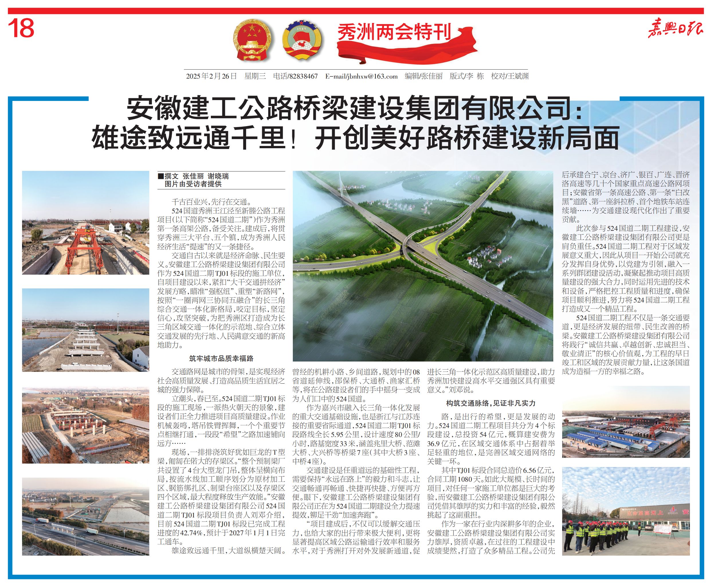 【名媒聚焦】嘉興日報:安徽建工公路橋梁建設集團有限公司——雄途致遠通大道!開創(chuàng)美好建工路橋建設新局面