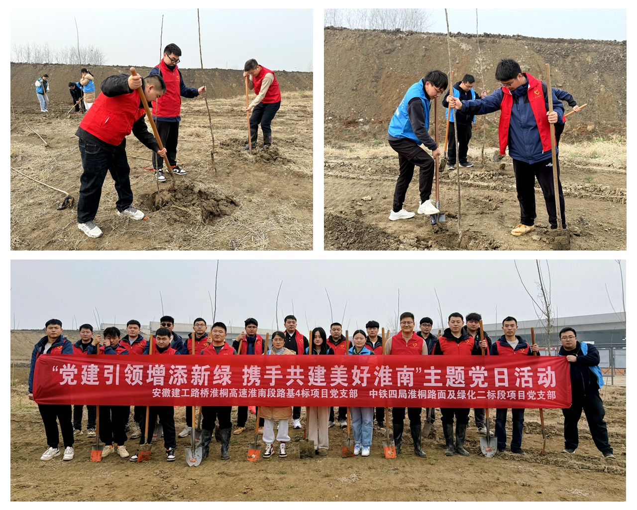 淮桐高速淮南段路基4標(biāo)項(xiàng)目黨支部聯(lián)合中鐵四局淮桐路面及綠化二標(biāo)黨支部在李山互通聯(lián)合開展“黨建引領(lǐng)增添新綠,攜手共建美好淮南”主題黨日活動(dòng)。