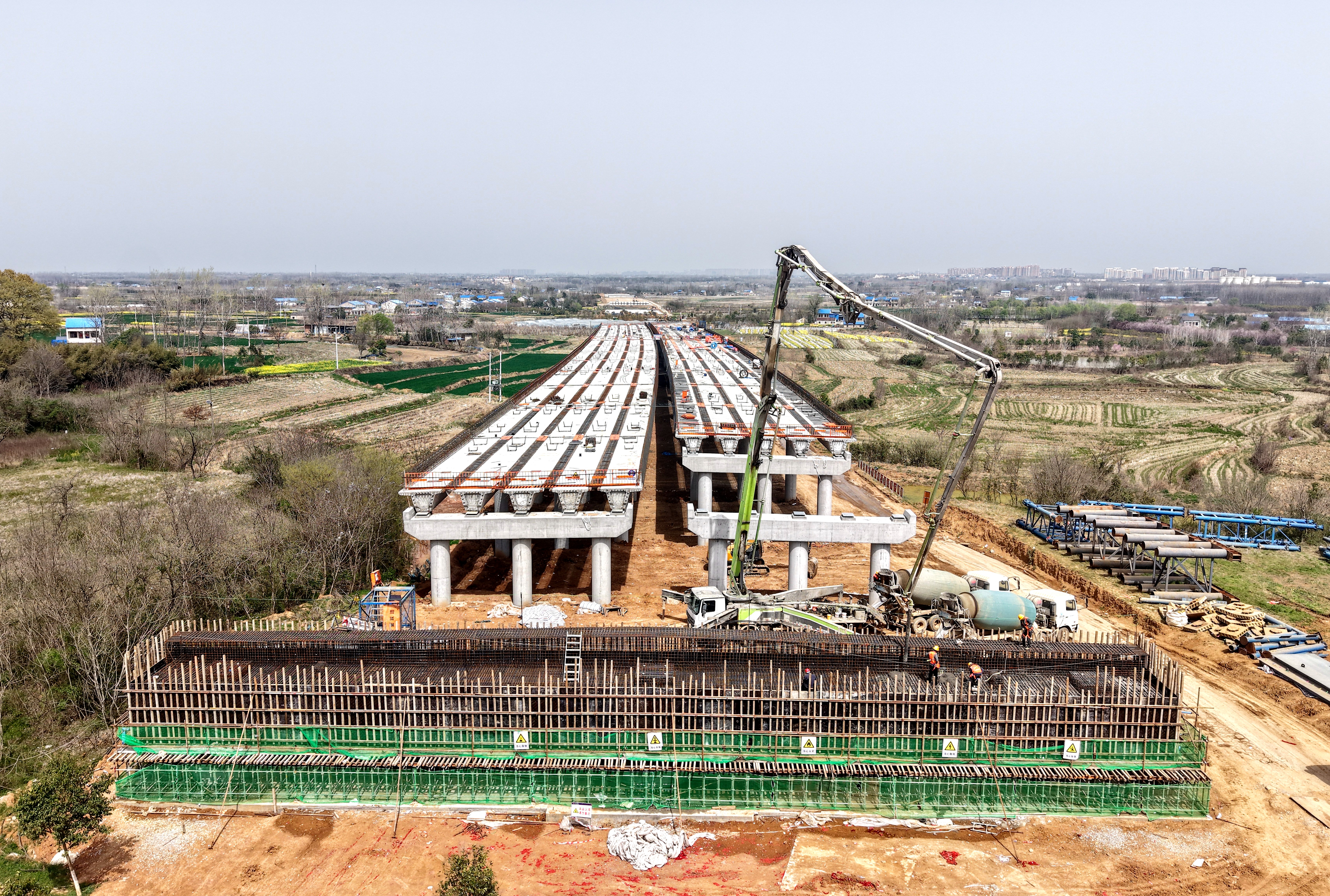 春暉大干正當(dāng)時 | 淮桐高速合肥段路基2標(biāo)淠河總干渠大橋主橋首座蓋梁澆筑完成