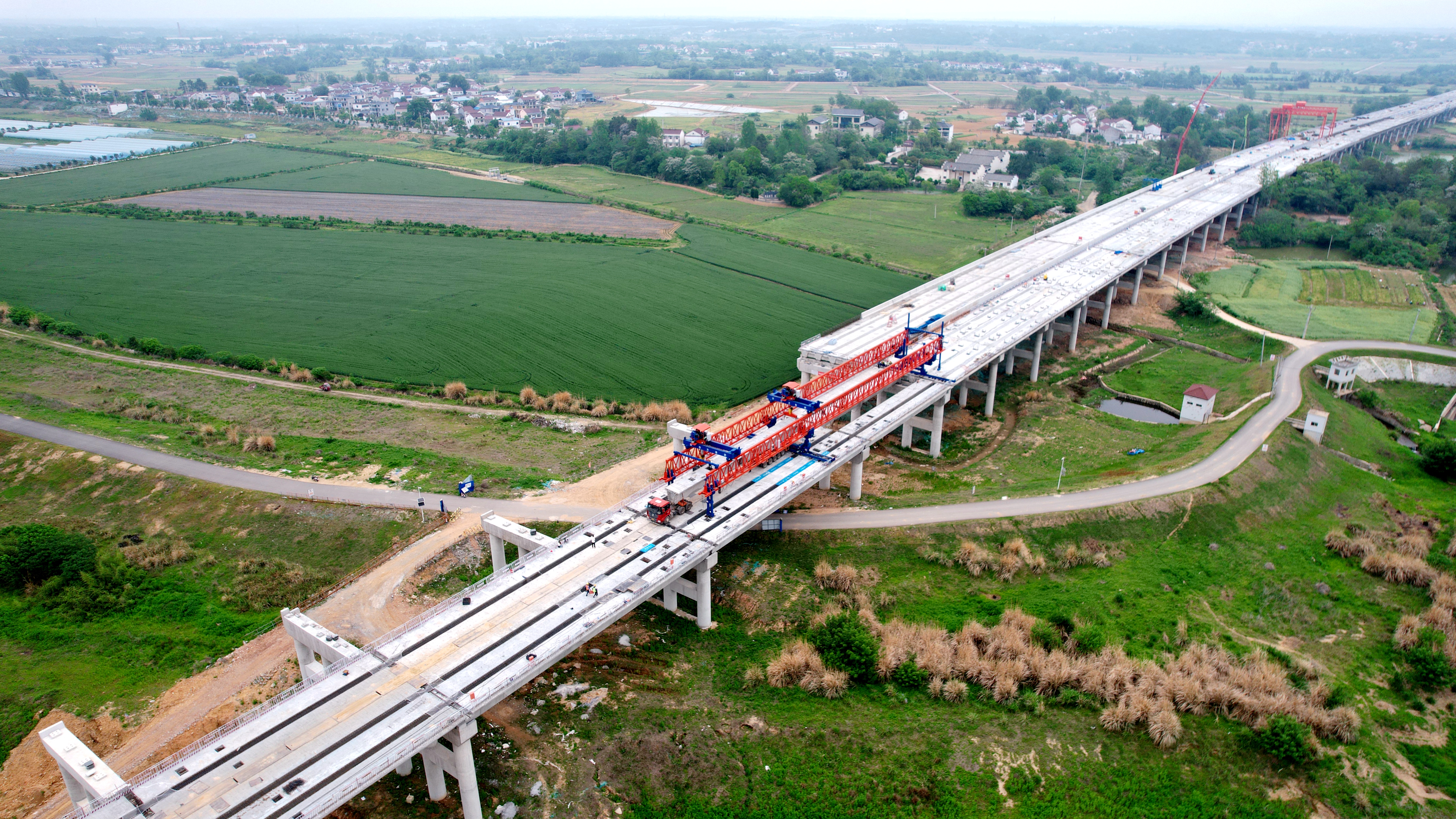 皖水河特大橋全長3.59km,橫跨皖水河、梅河、珠流河三條河流,跨越016鄉(xiāng)道及多條管道,交叉施工多。箱梁架設(shè)期間,項(xiàng)目部科學(xué)編制架設(shè)施工組織計(jì)劃,積極協(xié)調(diào)施工工序,創(chuàng)新采用架橋機(jī)架設(shè)箱梁,提高了架梁效率。