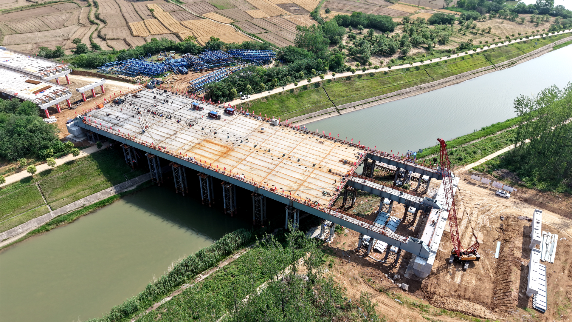 奮戰(zhàn)二季度 沖刺“雙過(guò)半” | 淮桐高速合肥段路基2標(biāo)淠河總干渠大橋主縱梁順利合龍