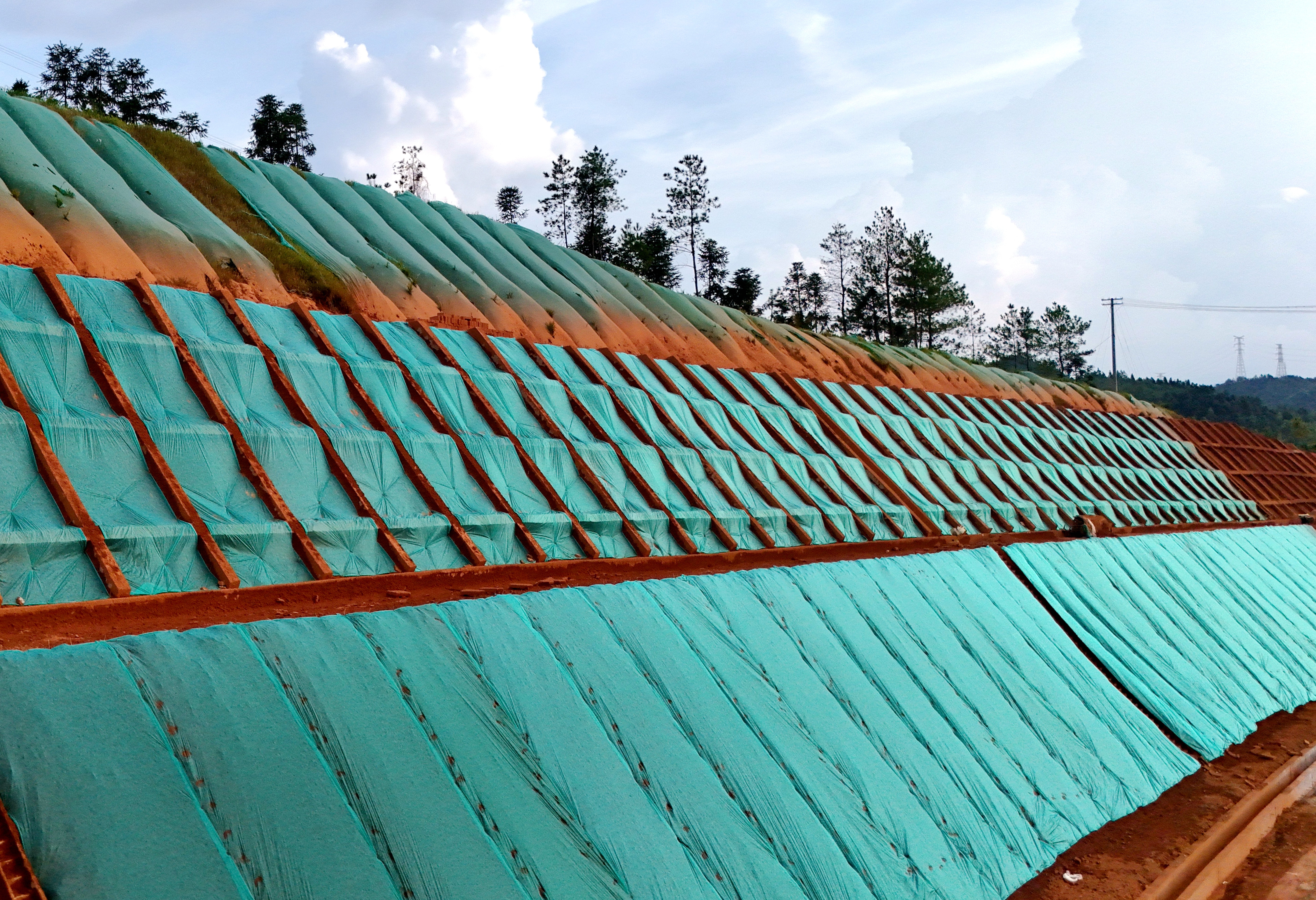 面對(duì)土壤本身易侵蝕、穩(wěn)定性差的巨大挑戰(zhàn),項(xiàng)目部提出了“預(yù)防為主、防治結(jié)合、全程管控”的施工思路。在滿足穩(wěn)定性的前提下控制坡率,有效降低坡面流速,減少侵蝕;同時(shí)采取“開(kāi)挖一段、防護(hù)一段、綠化一段”的分區(qū)作業(yè)、分段施工方式,避免大面積同時(shí)開(kāi)挖,縮短土壤裸露的時(shí)間;并針對(duì)紅壤酸性強(qiáng)、貧瘠、直接綠化困難的特點(diǎn),充分發(fā)揮項(xiàng)目技術(shù)與設(shè)備優(yōu)勢(shì),選取耐貧瘠、耐酸性、固土能力強(qiáng)、根系發(fā)達(dá)的本地草種,將種子、肥料、土壤改良劑、粘合劑、保水劑等與水混合,成功改良坡面土壤。通過(guò)該施工方法,項(xiàng)目降低綜合成本18%,水土流失減少70%,實(shí)現(xiàn)了降本增效與生態(tài)環(huán)保的多重效益。