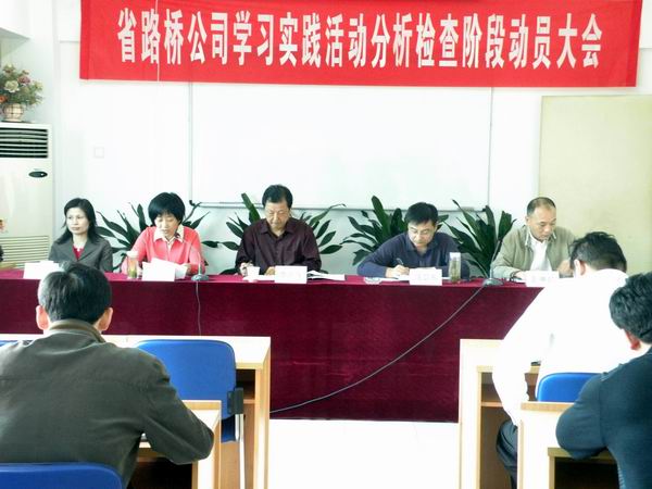 會上,陳書記在動員講話里首先全面回顧總結(jié)了學(xué)習(xí)實踐活動第一階段的情況。陳書記從四個方面總結(jié)了第一階段的學(xué)習(xí)調(diào)研情況:一、認(rèn)真籌備,積極動員。公司黨委迅速行動,及時召開了黨委會議,成立了領(lǐng)導(dǎo)小組及其辦公室,研究制定了《安徽省路橋公司開展深入學(xué)習(xí)實踐科學(xué)發(fā)展觀活動實施方案》等指導(dǎo)性文件,并于3月24日上午,召開了學(xué)習(xí)實踐科學(xué)發(fā)展觀活動動員大會。二、創(chuàng)新方式、強化學(xué)習(xí)。學(xué)習(xí)實踐活動動員大會后,公司學(xué)習(xí)實踐活動領(lǐng)導(dǎo)小組迅速組織實施第一階段的學(xué)習(xí)實踐活動。一是組織所屬各支部書記就如何組織開展學(xué)習(xí)實踐科學(xué)發(fā)展觀活動進(jìn)行培訓(xùn);二是以求真務(wù)實的作風(fēng)推動學(xué)習(xí)實踐活動深入開展,及時在網(wǎng)上開辟了學(xué)習(xí)實踐科學(xué)發(fā)展觀專欄,并利用公司內(nèi)刊《路橋信息》廣為宣傳,為實踐活動營造良好的輿論氛圍;三是將《科學(xué)發(fā)展觀重要論述摘編》、《毛澤東、鄧小平、 江澤民、論科學(xué)發(fā)展》發(fā)至每位黨員手上;四是強化學(xué)習(xí),堅持學(xué)習(xí)規(guī)定內(nèi)容與自選內(nèi)容相結(jié)合、集中學(xué)習(xí)與自學(xué)相結(jié)合、學(xué)習(xí)理論與指導(dǎo)實踐相結(jié)合,正確處理工學(xué)矛盾,創(chuàng)新學(xué)習(xí)方式,確保學(xué)習(xí)質(zhì)量。三、深入調(diào)研、解放思想。公司黨委把開展調(diào)研作為掌握實情、發(fā)現(xiàn)問題、破解難題的重要基礎(chǔ),把解放思想大討論作為對學(xué)習(xí)成果的檢驗。一是集思廣益,確定調(diào)研課題,領(lǐng)導(dǎo)班子在廣泛征求意見的基礎(chǔ)上,確定了9個調(diào)研課題和課題組成員;二是深入基層,廣泛調(diào)研,公司領(lǐng)導(dǎo)班子成員深入到聯(lián)系點開展調(diào)研,問計于基層,問計于員工,廣泛聽取員工對公司科學(xué)發(fā)展的意見和建議,進(jìn)一步摸清了問題,理清了思路。四、突出實踐特色,聯(lián)系實際到位。在抓好學(xué)習(xí)的同時,堅持理論聯(lián)系實踐,把學(xué)習(xí)實踐活動和生產(chǎn)經(jīng)營緊密結(jié)合起來。公司領(lǐng)導(dǎo)班子分別就外協(xié)隊伍的管理與控制、人力資源管理、項目質(zhì)量管理、市政市場戰(zhàn)略定位、項目財務(wù)管理、經(jīng)營管理等方面的問題進(jìn)行了深入調(diào)研,并提出了可行的解決方案,形成了有質(zhì)量的調(diào)研報告。各支部、各項目黨小組都始終把學(xué)習(xí)實踐活動同生產(chǎn)經(jīng)營和企業(yè)管理緊密聯(lián)系起來,做到相互促進(jìn)。陳書記指出通過學(xué)習(xí)實踐活動的開展,公司領(lǐng)導(dǎo)謀劃科學(xué)發(fā)展的決心、信心都更加堅定,公司上下的凝聚力、干勁大大增強,生產(chǎn)經(jīng)營形勢良好。截至到目前,公司承攬工程6.88億,同比增長26.7%。同時陳書記還指出了第一階段學(xué)習(xí)實踐活動中存在的一些問題。接著陳書記對如何做好分析檢查階段的工作提了兩點意見。一、要認(rèn)真抓好三個環(huán)節(jié)。陳書記對召開領(lǐng)導(dǎo)班子專題民主生活會、形成領(lǐng)導(dǎo)班子分析檢查報告、組織群眾評議三個環(huán)節(jié)提出了具體要求;二、要始終堅持六個貫穿始終,一要把活動主題貫穿始終,二要把理論學(xué)習(xí)貫穿始終,三要把實踐特色貫穿始終,四要把邊查邊改貫穿始終,五要把嚴(yán)格要求貫穿始終,六要把“兩不誤、兩促進(jìn)”貫穿始終。