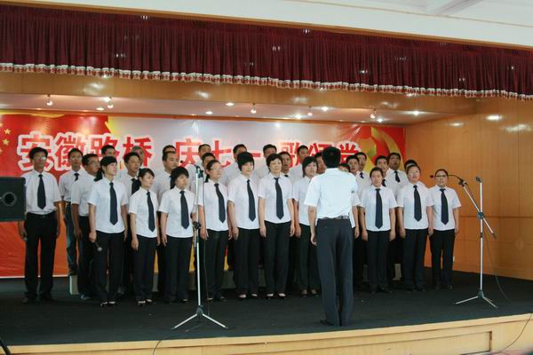 緊接著,慶七一,歌頌黨職工歌詠大賽開(kāi)始。比賽在路面公司激昂的《沒(méi)有共產(chǎn)黨就沒(méi)有新中國(guó)》合唱聲中拉開(kāi)序幕,比賽場(chǎng)上,參賽隊(duì)員精神飽滿,著裝整齊,懷著對(duì)中國(guó)共產(chǎn)黨、對(duì)祖國(guó)的深厚感情,熱情高歌《今天是你的生日我的中國(guó)》、《愛(ài)我中華》、《歌唱祖國(guó)》、《精忠報(bào)國(guó)》、《咱們工人有力量》、……發(fā)自肺腑的歌聲深深感動(dòng)了現(xiàn)場(chǎng)觀眾。