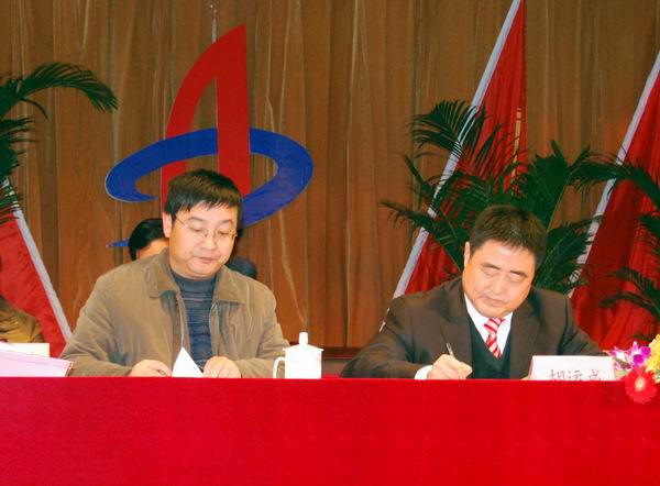 集團公司董事長、總經(jīng)理胡運成與公司總經(jīng)理汪衛(wèi)東簽訂2010年生產(chǎn)、經(jīng)營目標責(zé)任書