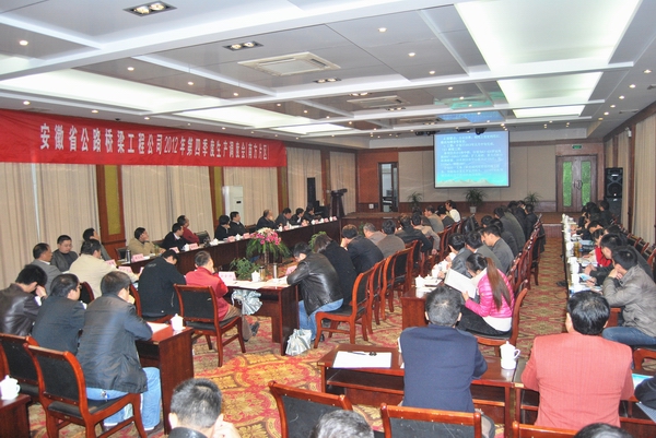 公司副總經理、總工程師彭申凱要求各項目認真學習高速公路建設管理若干意見,加強原材料檢測、施工方案審查,特別是要加強隧道質量控制。財務總監(jiān)陸春濤通報了公司資金使用情況,要求各項目做好資金統一管理,完工項目做好債權債務清理工作,新建項目使用公司統一表單。副總經理孫學軍要求各項目加強物資設備管理,降低用量,提高效率;多謀劃、深挖潛,提高市政項目盈利能力。副總經理盛明宏要求各項目進一步推進生產,BT項目做好回購策劃,泗泗高速等項目要做好收尾工作。副總經理劉要武通報了公司經營工作主要方向,要求各項目積極配合做好信用評價工作??偨洕鷰煑钗闹蟾黜椖可钊胪七M目標管理責任制辦法實施,完善項目管理體系。工會主席胡運春要求各項目在地方工作上積極溝通、協調、上報,切實做好項目員工、勞務隊伍的培訓工作。