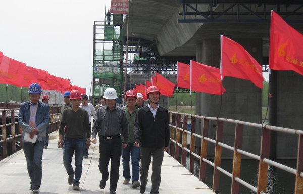 何局長一行聽取了公司總經(jīng)理助理傅月斌同志關(guān)于當(dāng)前施工總體情況的匯報(bào),并深入到主橋施工現(xiàn)場(chǎng),詳細(xì)詢問和查看了工程標(biāo)準(zhǔn)化建設(shè)和質(zhì)量安全情況,對(duì)該項(xiàng)目總體建設(shè)情況給予了肯定。
