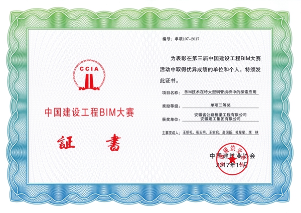 近日,在廈門召開的中國建設工程BIM技術成果經(jīng)驗交流會暨第三屆全國建設工程BIM大賽成果展示會上,由公司選送的《BIM技術在特大型鋼管拱橋中的探索應用》成果,在全國794項BIM參賽成果中脫穎而出,以優(yōu)異的成績榮獲“第三屆中國建設工程BIM大賽”單項二等獎。