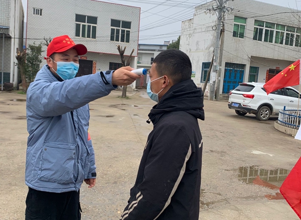 中共黨員董峰是興贛北延A6標(biāo)質(zhì)檢部副部長,他的家鄉(xiāng)在湖北省孝感市大悟縣呂王鎮(zhèn)董灣村,是全國疫情重災(zāi)區(qū)。疫情發(fā)生后,他積極響應(yīng)號(hào)召,主動(dòng)請戰(zhàn),申請加入到當(dāng)?shù)氐目埂耙摺钡谝痪€。至今,他已累計(jì)檢查來往群眾640人次,每天統(tǒng)計(jì)每家每戶所需生活物資并陸續(xù)送上門,在面對群眾的不理解時(shí),耐心溝通解釋,被董灣村稱贊為最美“逆行者”。