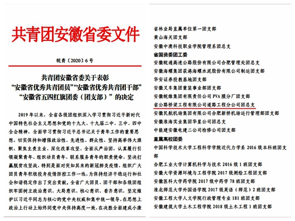 道路分公司團(tuán)總支榮獲“安徽省五四紅旗團(tuán)總支”稱號(hào)