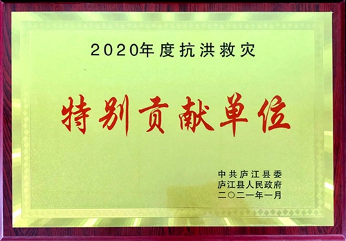 公司榮獲廬江縣“抗洪救災(zāi)特別貢獻(xiàn)單位”稱號