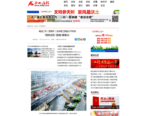 安徽路橋公司承建的暢通二環(huán)(西南環(huán))工程是目前合肥市最重要的市政工程之一。自項(xiàng)目建設(shè)以來,備受社會(huì)各界的高度關(guān)注。特別是在春節(jié)期間,項(xiàng)目鉚足干勁、大干正酣的諸多場(chǎng)景,得到人民網(wǎng)、中國日?qǐng)?bào)、學(xué)習(xí)強(qiáng)國、安徽衛(wèi)視、中安在線、安徽網(wǎng)、新安晚報(bào)、澎湃新聞、合肥日?qǐng)?bào)等眾多媒體的全方位、多角度報(bào)道。