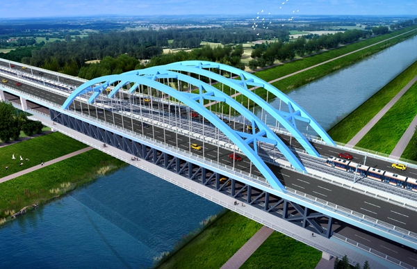 繁華大道橋是安徽省第一座軌道與城市道路共線的大跨度橋梁,軌道位于雙層橋梁的上層,采用了鋼桁架+拱協(xié)同工作的結(jié)構(gòu)體系,國(guó)內(nèi)屬于首次采用,在項(xiàng)目技術(shù)應(yīng)用上具有顯著的創(chuàng)新性。