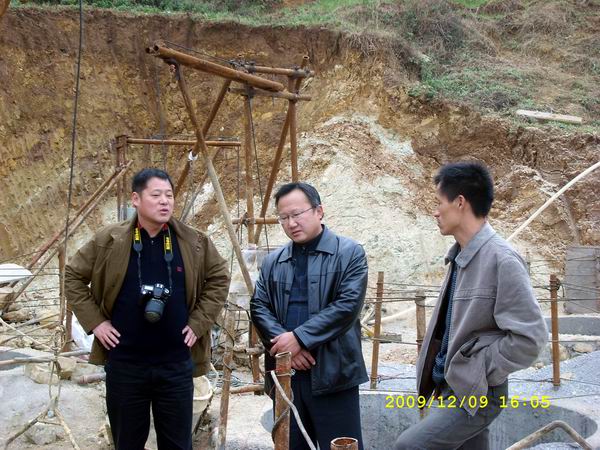 9日下午,孫總陸總一行稍做休息之后,便在我部項目經(jīng)理劉曉晗、財務經(jīng)理李強等人員的陪同下,對我部的巖子腳大橋4號、5號主橋墩挖孔樁處、雨壩隧道、拌和站料場、標尾路基挖土方處做了認真的檢查。孫總對我部開工以來的進展速度和取得的成績給予肯定。當前我項目4號墩挖孔樁16根樁基已完成14根,剩余2根也即將成孔;5號墩挖孔樁也完成一半以上;隧道便道的修建速度和路基填方速度都較快。孫總也就我部的不足之處提出要求,要求我部應更加主動積極地解決地方問題,加快橋梁上部施工隊伍的選擇,保證橋梁施工的連續(xù)性。在施工過程中要確保施工安全,特別是隧道進洞及石方爆破,要有專項安全方案,在確保施工質量的同時要做好文明施工,展示路橋風采。