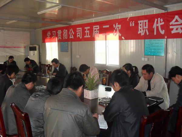 會上,項目經(jīng)理杜海峰先向大家傳達了此次職代會的精神,并帶領(lǐng)大家認真學習了公司總經(jīng)理汪衛(wèi)東在職代會上的工作報告——《夯實管理基礎(chǔ),拓展發(fā)展空間,為推動安徽路橋快速發(fā)展而努力奮進》。報告求真務(wù)實,目標明確,全面回顧了2009年的工作,碩果累累,令人歡欣;又周密部署了2010年的新任務(wù),振奮人心,鼓舞士氣。