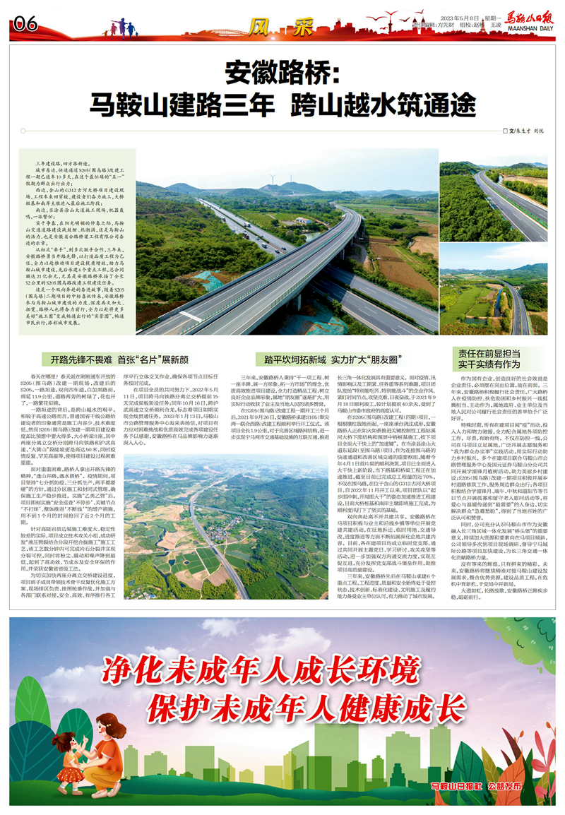 名媒聚焦|《馬鞍山日?qǐng)?bào)》:安徽路橋——馬鞍山建路三年 跨山越水筑通途