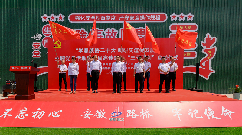 5月12日,公司機(jī)關(guān)第一黨支部與道路分公司黨總支聯(lián)合開展“學(xué)思踐悟二十大 調(diào)研交流促發(fā)展”主題黨日活動(dòng),共同見證合周高速潁臨段LJ04標(biāo)“三號(hào)聯(lián)創(chuàng)”啟動(dòng)儀式。公司黨委書記、董事長錢申春以普通黨員身份參加活動(dòng)并主持召開主題教育調(diào)研座談會(huì)。