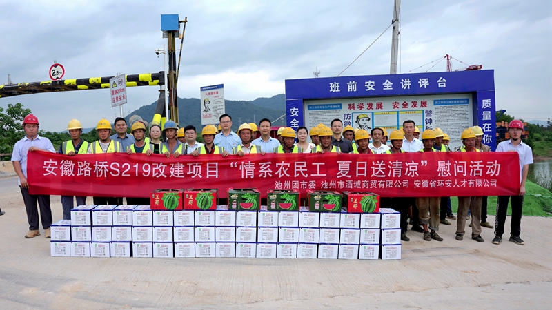 7月7日下午,共青團(tuán)池州市委書記寧睿到公司承建的S219青陽改建項(xiàng)目開展團(tuán)的十九大精神宣講,并開展“送清涼”慰問活動(dòng)。