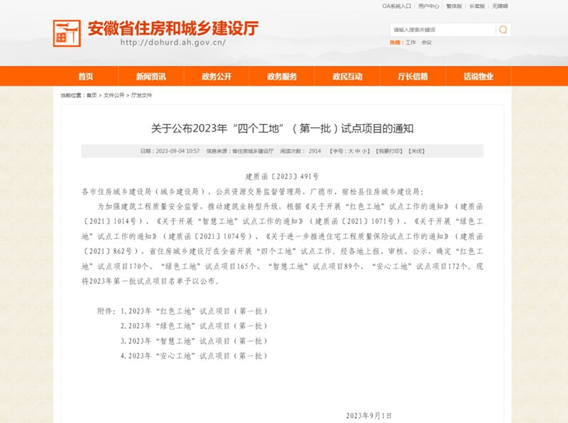 公司多個(gè)項(xiàng)目獲評(píng)安徽省住建廳2023年首批“四個(gè)工地”試點(diǎn)項(xiàng)目稱號(hào)