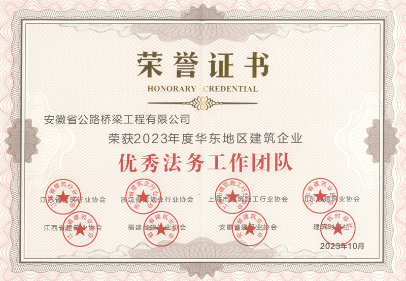 公司榮獲2023年度華東地區(qū)建筑企業(yè)“優(yōu)秀法務(wù)工作團(tuán)隊(duì)”稱號(hào)