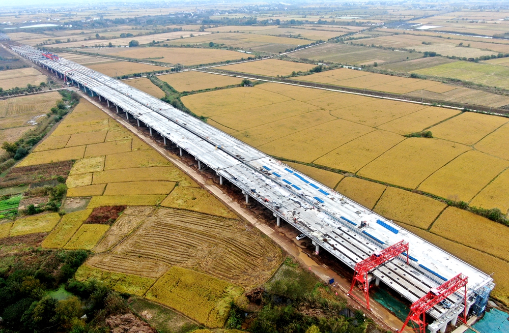 作為安徽省“五縱十橫”高速公路網(wǎng)規(guī)劃的重要組成部分,銅商高速無巢段路線全長(zhǎng)約27.5公里。公司承建標(biāo)段全長(zhǎng)約13.9公里,共需架設(shè)預(yù)制箱梁2720余片。為保證整體施工進(jìn)度,項(xiàng)目團(tuán)隊(duì)未雨綢繆,超前謀劃,合理調(diào)配資源,以“跑步進(jìn)場(chǎng)、開局沖刺”的姿態(tài),僅用2個(gè)月時(shí)間高效完成項(xiàng)目駐地、場(chǎng)站等前期臨建施工。6月份,項(xiàng)目預(yù)制梁場(chǎng)提前達(dá)到“日產(chǎn)10片梁”的滿產(chǎn)狀態(tài),為充分釋放預(yù)制梁場(chǎng)產(chǎn)能,加快預(yù)制梁板架設(shè)進(jìn)度,項(xiàng)目管理團(tuán)隊(duì)集思廣益,創(chuàng)造性提出了“架中間,放兩頭”的工作新思路,經(jīng)過縝密設(shè)計(jì)部署,在永安河特大橋35#墩處設(shè)置提梁站,利用汽車吊進(jìn)行前四跨梁板架設(shè)安裝,為架橋機(jī)的安裝作業(yè)提供平臺(tái),巧妙避開橋頭便道不通的現(xiàn)實(shí)阻礙,大幅提升了現(xiàn)場(chǎng)預(yù)制梁板架設(shè)施工進(jìn)度。