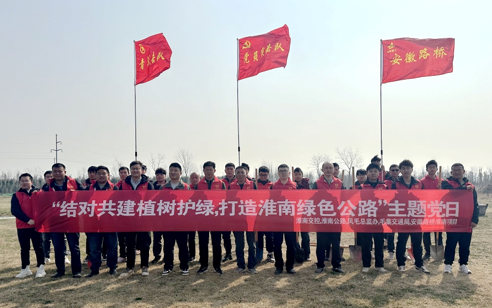 鳳毛快速通道、淮桐路基4標(biāo)項目與淮南交控鳳毛項目辦、淮南公路、鳳毛總監(jiān)辦、毛集交通局,在毛集實驗區(qū)趙臺孜村苗圃聯(lián)合開展“結(jié)對共建植樹護綠,打造淮南綠色公路”主題黨日活動,栽樹植綠,全面提升路域生態(tài)環(huán)境質(zhì)量。