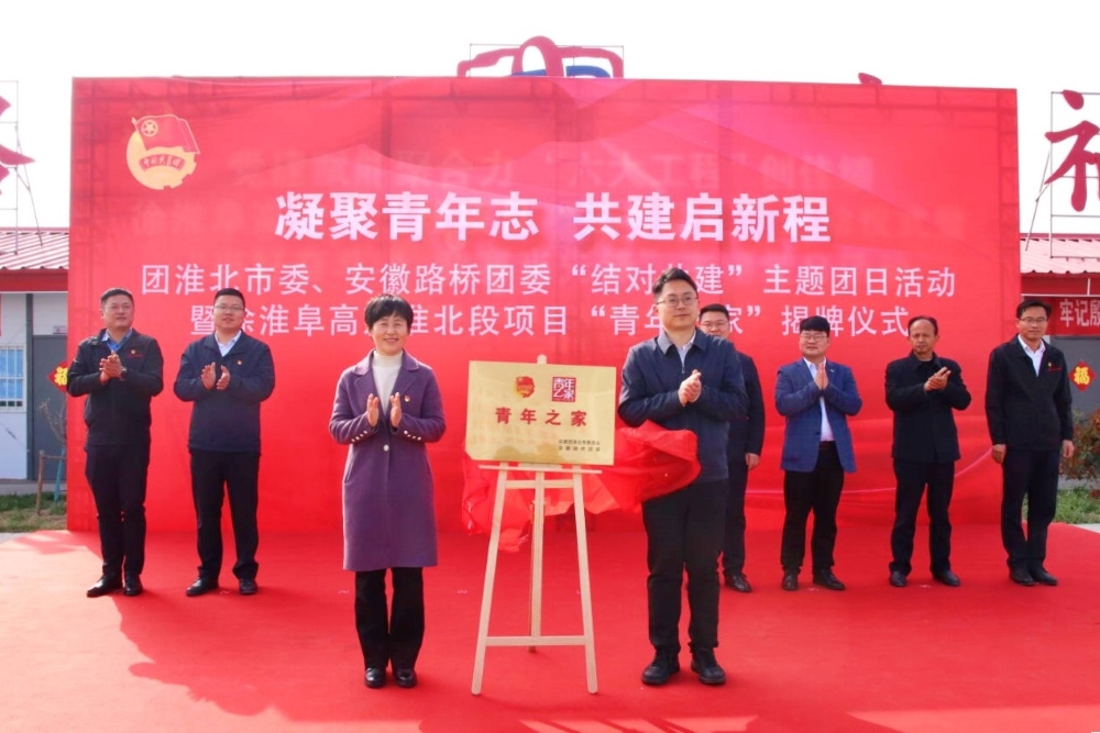 3月28日下午,團(tuán)淮北市委、安徽路橋團(tuán)委在徐淮阜高速(淮北段)項(xiàng)目聯(lián)合開展主題團(tuán)日活動(dòng)。團(tuán)淮北市委書記陳文靖、副書記李凱,公司黨委委員、紀(jì)委書記王鵬出席活動(dòng)并共同為徐淮阜高速淮北段項(xiàng)目“青年之家”揭牌。