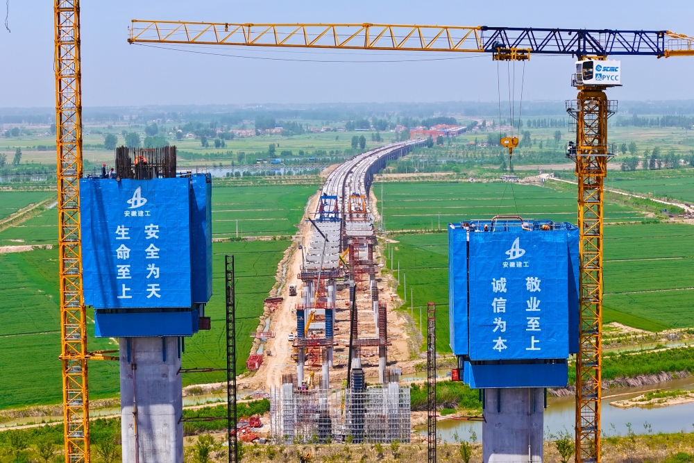 S16合周高速4標(biāo)東淝河大橋項(xiàng)目全員堅(jiān)守崗位,搶抓利好天氣,全面推進(jìn)主橋塔柱節(jié)段澆筑、橋梁墩柱施工和引橋梁板架設(shè)等重要工序。